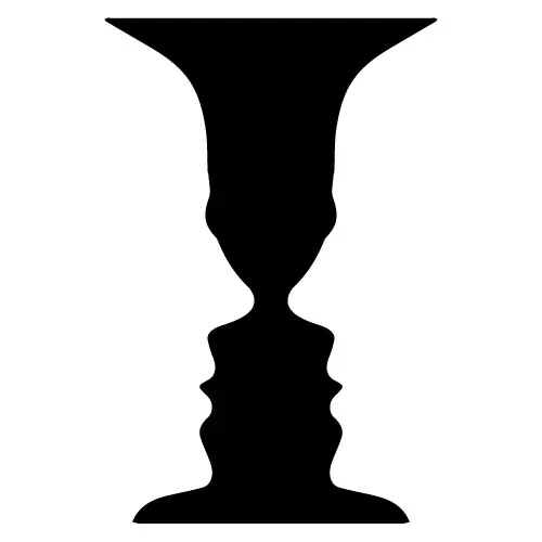 اصل شکل و زمینه میگوید ذهن بشر ذاتا تمایل دارد به بخشی از تصویر به عنوان شکل (پیشزمینه) و به بخش دیگر به عنوان زمینه (پسزمینه) نگاه کند. شکل زیر یکی از مثالهای مشهور این اصل است.