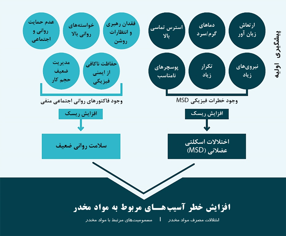 ۲- MSD ممکن است منجر به سوءاستفاده از مواد مخدر برای مدیریت علائمی مانند درد در محل کار شود که به افزایش خطر آسیبهای مرتبط با مواد مخدر منجر میشود.