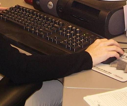 نمونه هایی از استرس تماسی مکانیکی در محل کار شامل استراحت دادن ساعدها بر لبه میز یا تکیه دادن به ایستگاه کاری با گوشه تیز است.