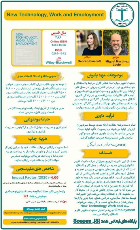 مجله شناسی۳: مجله New Technology, Work and Employment (NTWE)