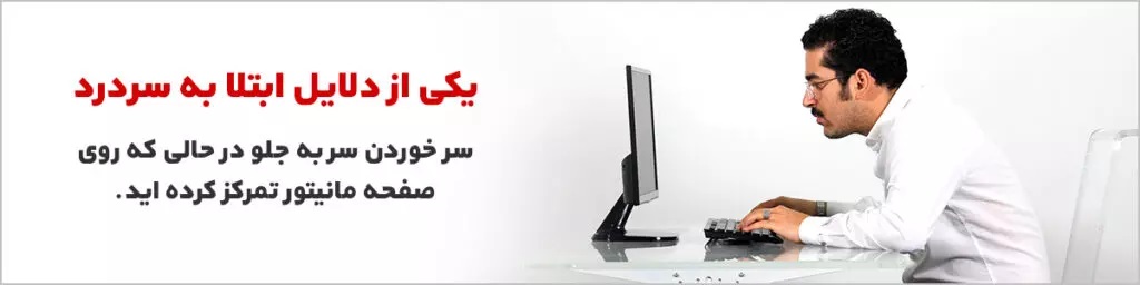 راه حل: ارتفاع مانیتورتان را تنظیم کنید به طوریکه بالای مانیتور هم سطح با ابروهایتان باشد.